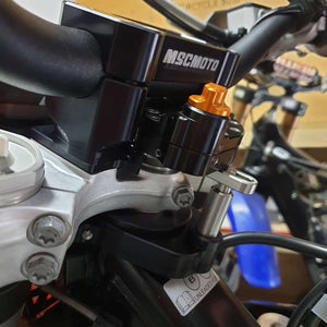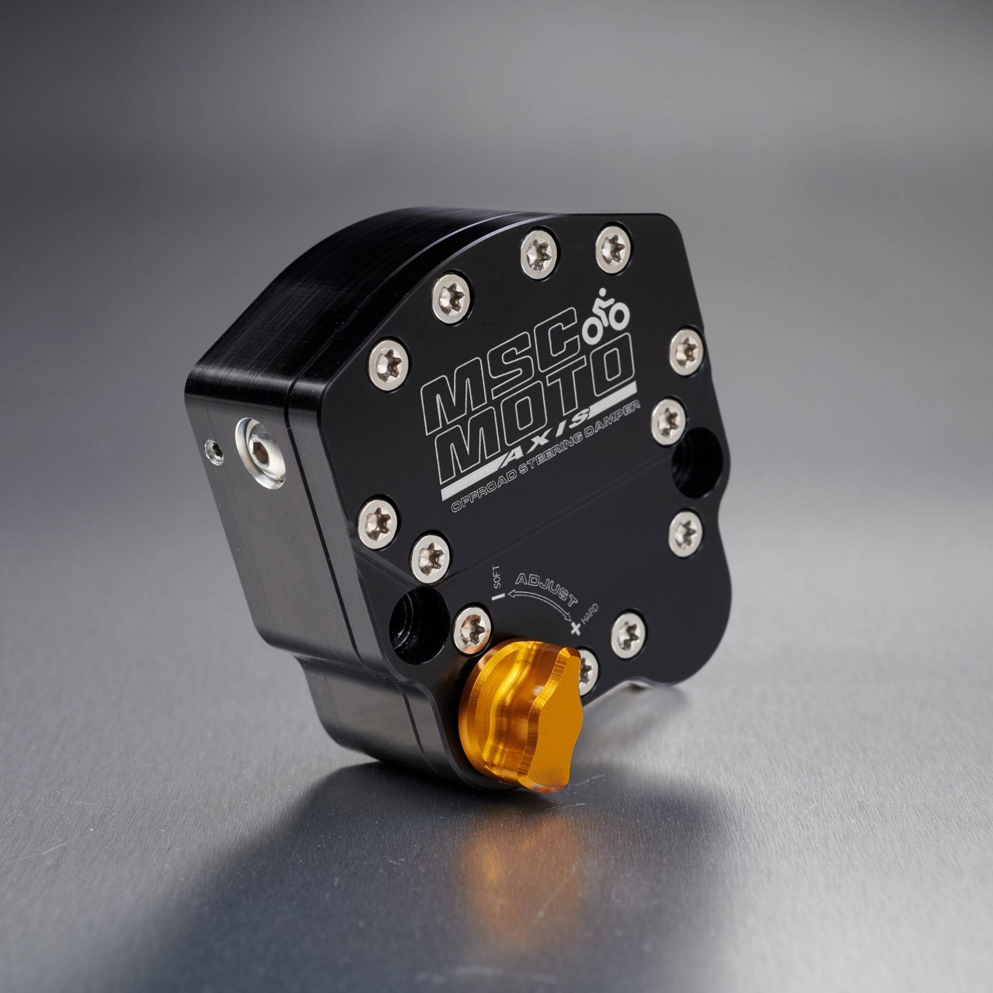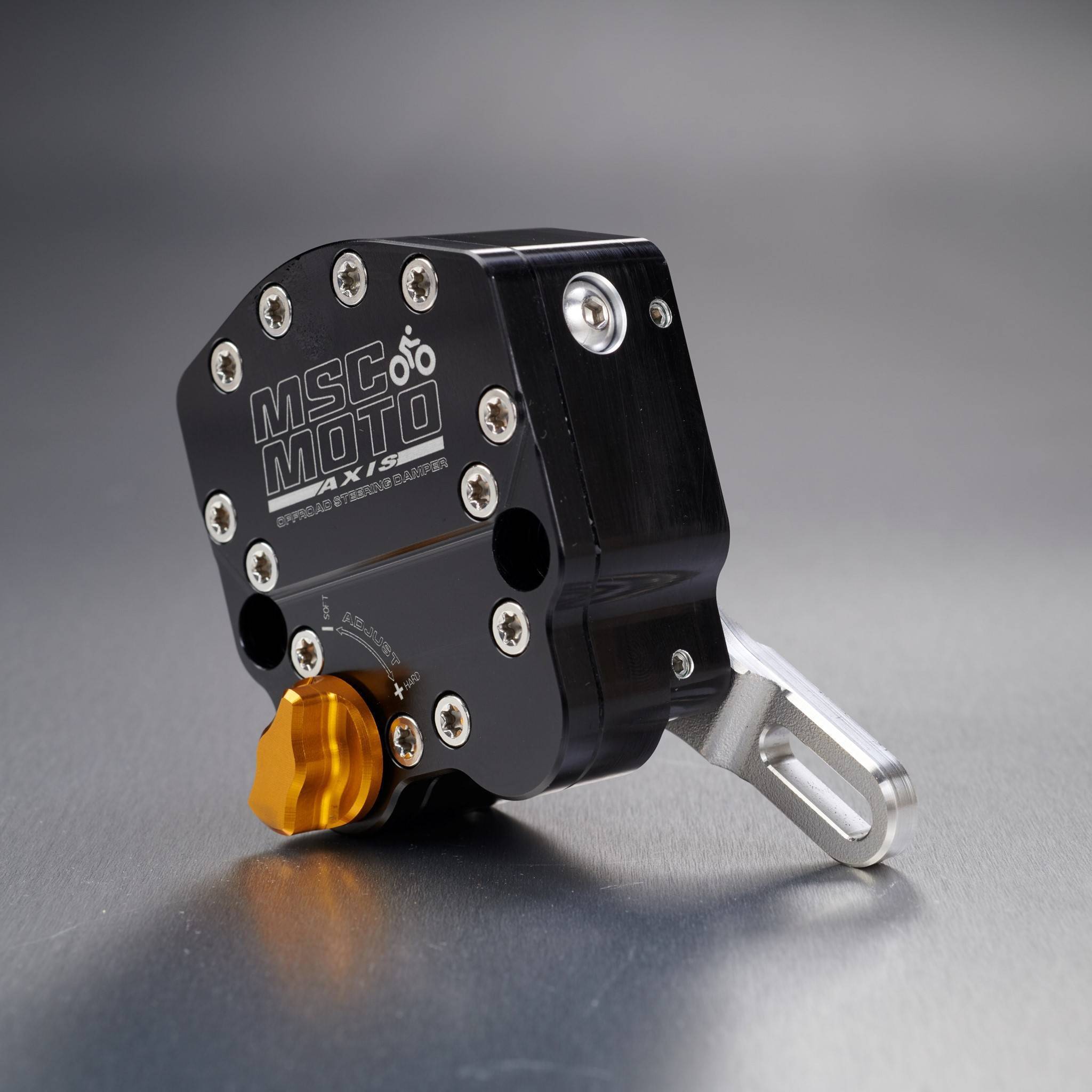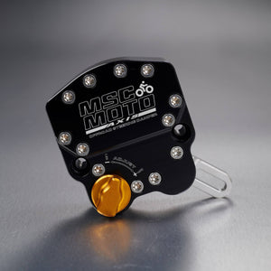 The AXIS steering damper is the latest in steering damper technology with its small compact design featuring 20 clicks of adjustment and Active Return to Centre (RTC) as well as all the standard MSC MOTO quality features like hardened steel long-lasting linkages and anodized billet construction.